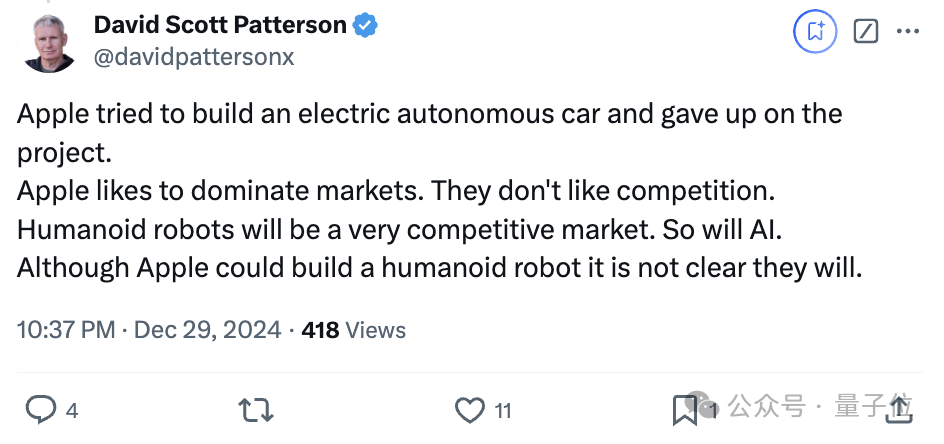 苹果之前也吵吵着要作念自动驾驶汽车,但终末一经搁置了。天然苹果有才调拓荒东谈主形机器东谈主,但会不会真作念一经不太明晰。