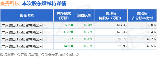 证券之星音讯,1月13日金丹科技发布公告《金丹科技:对于合手股5%以上推动减合手规划期限届满暨履行情况的公告》,其推动广州诚信创业投资有限公司于2024年10月25日至2025年1月7白昼筹划减合手316.6万股,占公司现在总股本的1.6778%,变动时间该股股价高涨26.6%,领域1月7日收盘报19.94元。